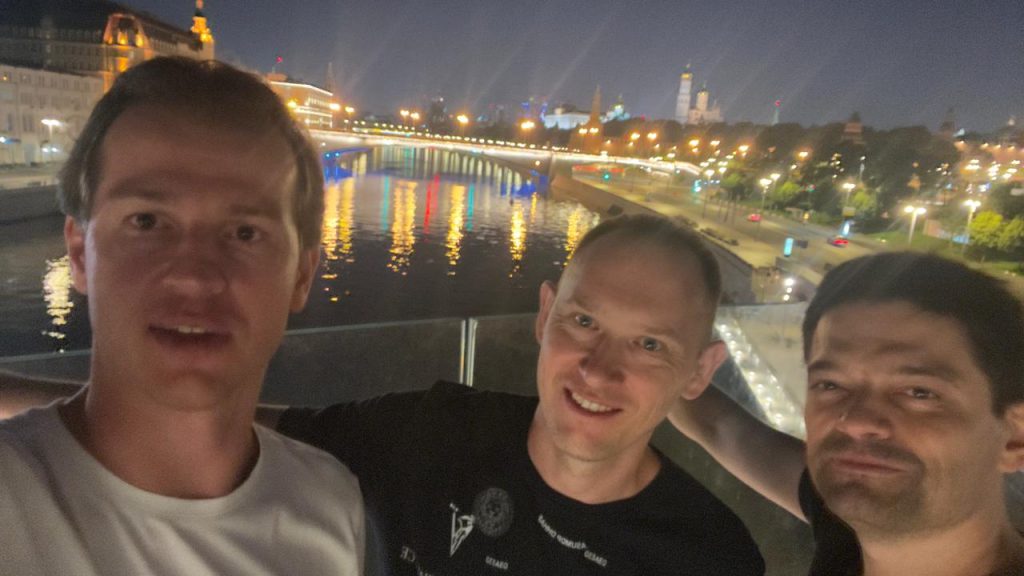 Встретился с Диманом на ВДНХ, погуляли, погода зачёт, теплынь, девочки раздетые. Прошли всё ВДНХ взад и вперёд. Пошли перекусить в The Bull, туда подошёл Саня. В Быке хорошо посидели — норм цены, вкусная и сытная еда, классный интерьер. Оттуда дошли до метро ВДНХ, но решили тусить всю ночь, пошли к Саньку на хату, бросили вещи и на таксо поехали на Чистые пруды. Там перекрыто, идут ремонтные работы. Пошли дворами на Покровку, зашли в рюмочную, на Маросейке ещё в одну рюмочную. Затем через Китай Город дошли до Зарядья, залипли на Парящем Мосту, и всех пробило спать. Дошли до Никольской, с неё к Большому театру, вызвали такси. Диман к себе в отель, мы с Саньком к Сане. Я остался у Сани на 14 этаже, а он пошёл спать на 8й. Лёг где-то 3.40, встал в 8. На самокате до м. ВДНХ, перешёл Ярославку и на самокате до Маленковской, там на электричке. Дома был в 9.50. Зачётно погуляли, прям ништяк.